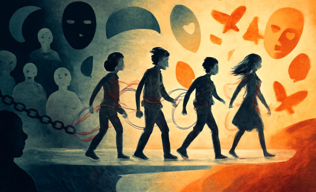 Los adolescentes debido a su condición se encuentran embarcados en una crítica transición donde se ven obligados a reposicionarse subjetivamente para encontrar el camino que los conduzca hacia el desprendimiento. En las vicisitudes propias de sus problemáticas frecuentemente nos topamos con alianzas inconcientes suscritas en otros momentos vitales que pueden devenir obstaculizantes en el proceso de desprendimiento manteniendo al joven ligado a sus otros significativos a través del retorno de lo reprimido. Este retorno podrá plasmarse a través de la formación de síntomas compartidos, que mantienen su formación de compromiso por medio de dos vías: por la propia alianza inconciente y por la lógica individual de la represión de cada uno de los sujetos.